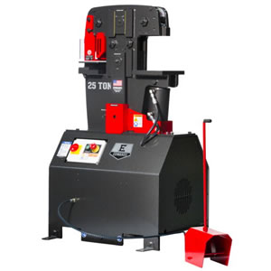 25 ton Edward ironworker is lowest tonnage Edwards ironworker, but is a workhorse for small fab shops or at home metal working. It’s punch station makes quick precise holes in steel sheet and plate. The open station allows for this ironworker to take on additional tasks as well, when optional tooling is added.