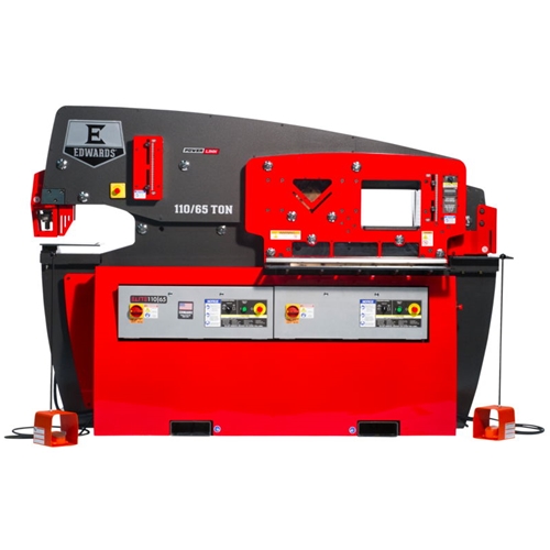 Unique Elite 110/65 Edwards Ironworker includes two work station, which can used simultaniously. This advanced feature rich ironworker has a ** Hydraulic Power pack built in to power the variety of Edwards Ironworker hydraulic accessories. Standard tolling includes a 110 ton Punch, a 14″ wide flat bar shear, an angle shear capable of cutting a 5 x 5 x 3/8 inch angle plus a coper notcher.